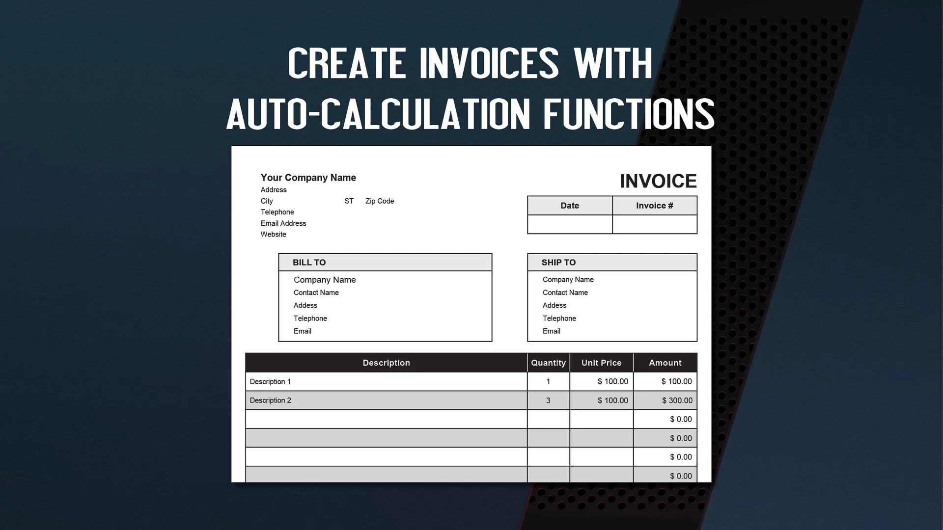 • Auto Calculate Qty. & Unit Price Total Amount